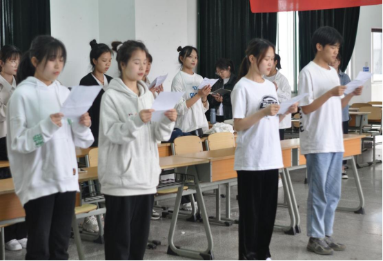 首先,主持人逐一介绍了到场的领导和老师。活动正式开始后,一首诗歌朗诵《月光下的中国》拉开帷幕,紧接着同志们带来情景剧表演《战火中的大学生》,表达了在面对国家危难关头时,要挺身而出,保家卫国,以实际行动报效国家。接下来,在场全体师生起立合唱了《我和我的祖国》。与此同时,屏幕放映着本期培训班每一次授课的视频,婉转悠扬的歌声奏唱浩气长存的爱国主义壮歌,表达了学子们的满腔爱国之情。