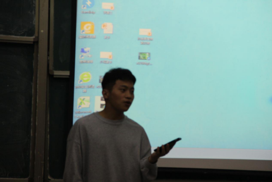 吴金线对家乡贵州省黔南布依族苗族自治州三都水族自治县九阡镇做了介绍,向大家展示了三都九阡水族的风景之美,人文之美,端节、卯节、敬霞节……其中,端节是世界上最长的节日,是水族人民祈求来年粮食丰收的隆重节日;卯节被称为“东方情人节”,年轻的单身男女到这一天会去到卯坡寻找中意的对象。汇报还展示了水族的鱼包韭菜、九阡酒等传统美食以及非物质文化遗产马尾绣。吴金线同学汇报完毕后,谢义娟同学提出了自己的疑问:“端节和卯节的流程大多相同,这两个节日有什么区别?”吴金线对这个问题进行了解答。