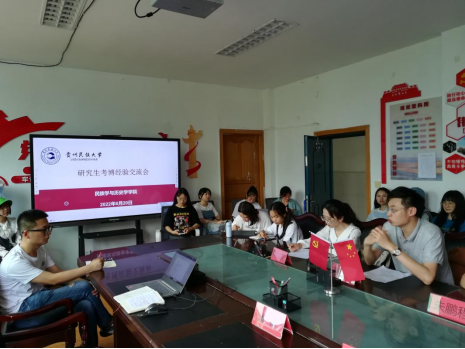 交流会伊始,郭国庆副院长介绍了三位研究生同学的考博情况,为同学们讲述了考博的相关内容。他鼓励研一、研二的同学要充满信心,积极进取,加强专业知识和英语的学习。