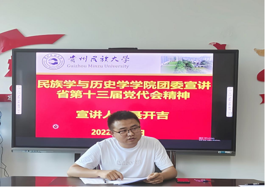 为深入贯彻落实贵州省第十三次党代会精神,7月1日14:00--15:00,民族学与历史学学院团委在行政楼403办公室开展省第十三次党代会精神宣讲活动,437必赢国际线路团委全体成员、各团支部书记参加了此次宣讲会。