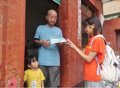 实践团成员给村民发放宣传单