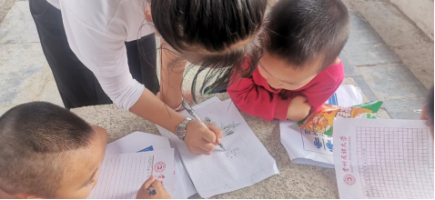 早上9点,实践团队前往农户家了解当地孩童使用普通话的情况,运用苗语与普通话双语结合交流方式与当地民众进行交流并辅导学生完成暑假作业。在过程中发现平日里当地小孩与父母交流、小孩之间交流主要使用普通话,与爷爷奶奶交流能使用基本的苗族语言。