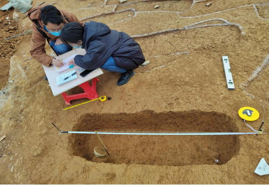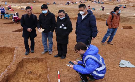 2022年12月18日,437必赢国际线路437必赢国际线路副院长叶成勇、杨成教授、吴桐副教授、韩恩瑞副教授、聂开吉老师一行5人,驱车前往贵州省文物考古研究所负责发掘的“贵州省贵阳市贵安新区大松山墓群”遗址参观交流并看望田光猛、刘清芳、禹贵强、张文芳、郭玉竹2021级、2022级文物与博物馆学专业在考古工地实习的20余名硕士研究生。