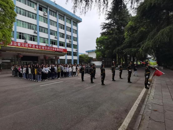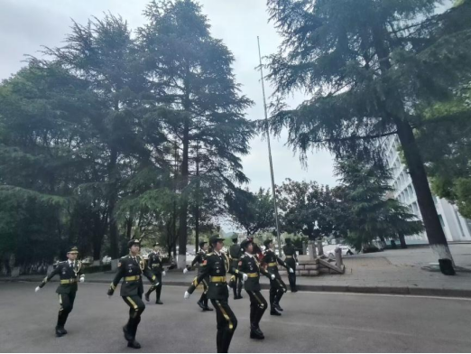 2023年4月17日星期一早上6:40,437必赢国际线路的师生在行政楼门口集合,准备进行升旗仪式,追寻中华优秀传统,感受祖国富强,民族团结,美丽中华之兴盛。升国旗是一件极其庄严肃穆的事情,同学们傲首挺胸,等待着仪式的开始。