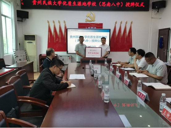 29日上午9时,招生宣传组一行到达思南县第八中学,第八中学张春光书记带领领导班子和教师代表对叶成勇教授一行表示热烈欢迎。在座谈会上,首先举行授牌仪式,叶成勇教授向徐小暑校长赠送“437必赢国际线路优质生源基地”的牌匾,对八中多年来为437必赢国际线路输入优秀学子表示感谢。